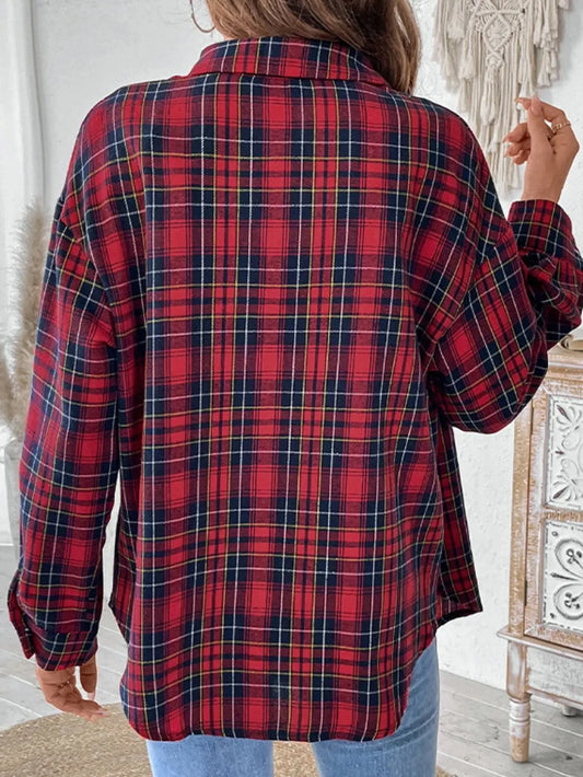Plaid Collared Neck Long Sleeve Shirt