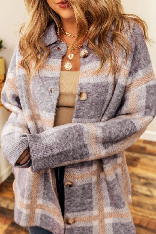 HYFVE Tweed Plaid Button Up Collared Neck Jacket