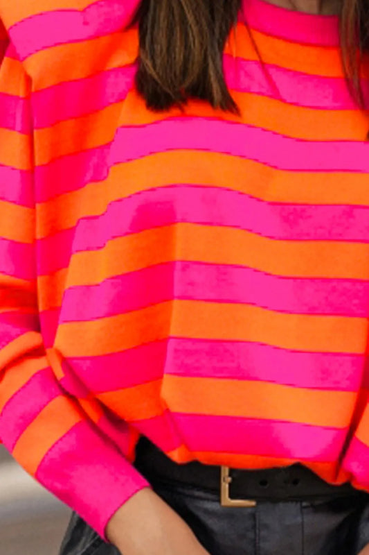 Striped Round Neck Long Sleeve Knit Top