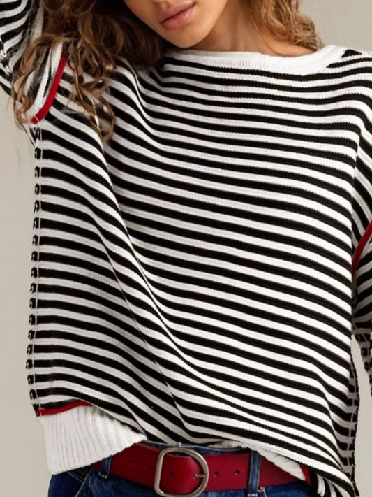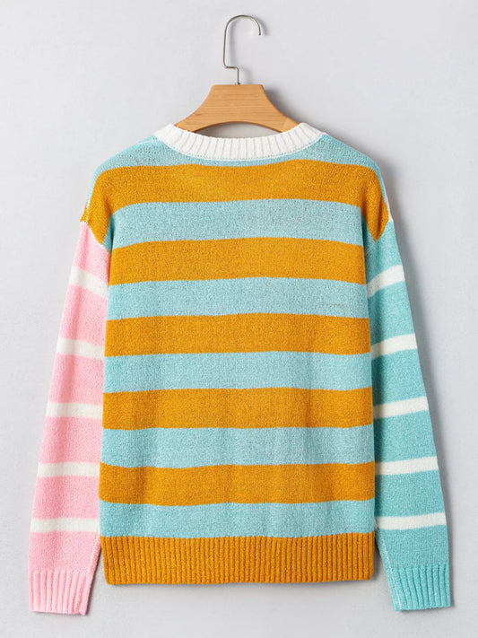 BiBi Colorful Floral Patched Sweater with Striped Sleeve